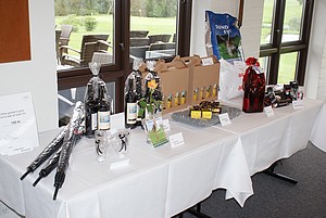 Præmiebordet var fyldt, så både gulv og væg måtte tages til hjælp, og fra Rækker Mølle Golf Cup rettes en stor tak til årets præmiesponsorer: