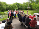 Efter fællessangen, ”Se det summer af sol over engen” sang Kirkekoret to sange – ”Vort modersmål, og Lovsynger Herre”. Derefter blev kaffen serveret og snakken gik livligt.