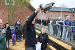 Efter den officielle indvielse inviterede, Danmarks Center for Vildlaks børn fra lokalområdet til at udsætte ørredyngel i det nyanlagte omløbsstryg. Efterfølgende blev det nye stryg undersøgt for fisk ved hjælp af elektrofiskeri. Et meget fint indslag, for man er vel nødt til at finde ud af om en investering på 2.5 millioner også gavner fiskene og deres mulighed for at finde vej op af Ganer Å? Alle ventede spændt på om elektrofiskeren ville få noget i nettet. Det varede ikke længe før resultaterne kom. Tre fiskearter synes at trives i det nye stryg. Der blev fanget ål, regnbueørred og bækørred, og børnene var synligt optaget af at følge med i fangsten og efterfølgende få den udsat igen.