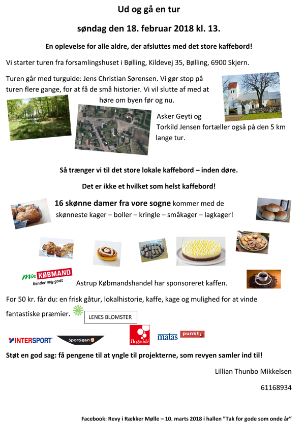En oplevelse for alle aldre, der afsluttes med det store kaffebord! Vi starter turen fra forsamlingshuset i Bølling, Kildevej 35, Bølling, 6900 Skjern