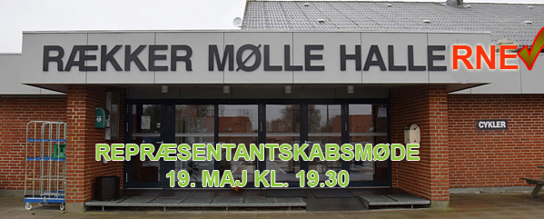 Der indkaldes til ordinært repræsentantskabsmøde i Rækker Mølle Hallerne onsdag den 19. maj kl. 19.30.